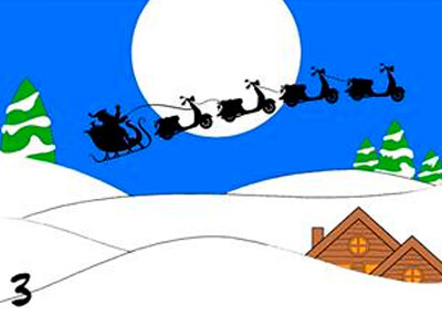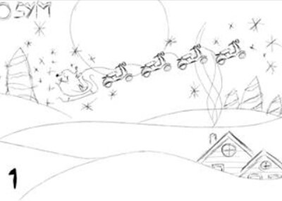 Das Wichtigste an personalisierte Weihnachtskarten ist die Idee. In diesem Fall wollten wir das Produkt unseres Kunden mit auf die Karte bringen. Doch da Motorroller nicht gerade für Weihnachten stehen und auch nicht so recht in die kalte Jahreszeit passen haben wir uns für die Darstellung als Silhouette entschieden. Dafür wollten wir das klassische Rentierszenario verwenden und die Rentiere durch die Roller ersetzen.
